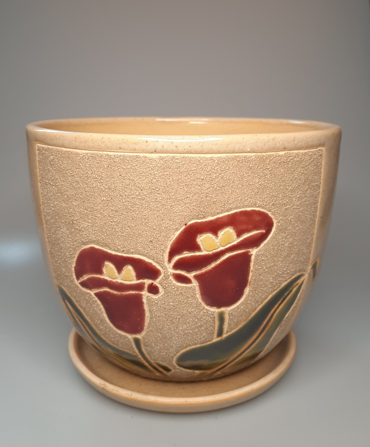 Цветочный горшок "Цветы" 19 см. Бежевый