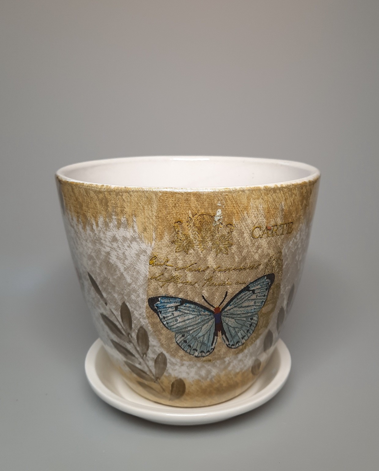 Горшок цветочный "Декупаж бутон бабочки" 350