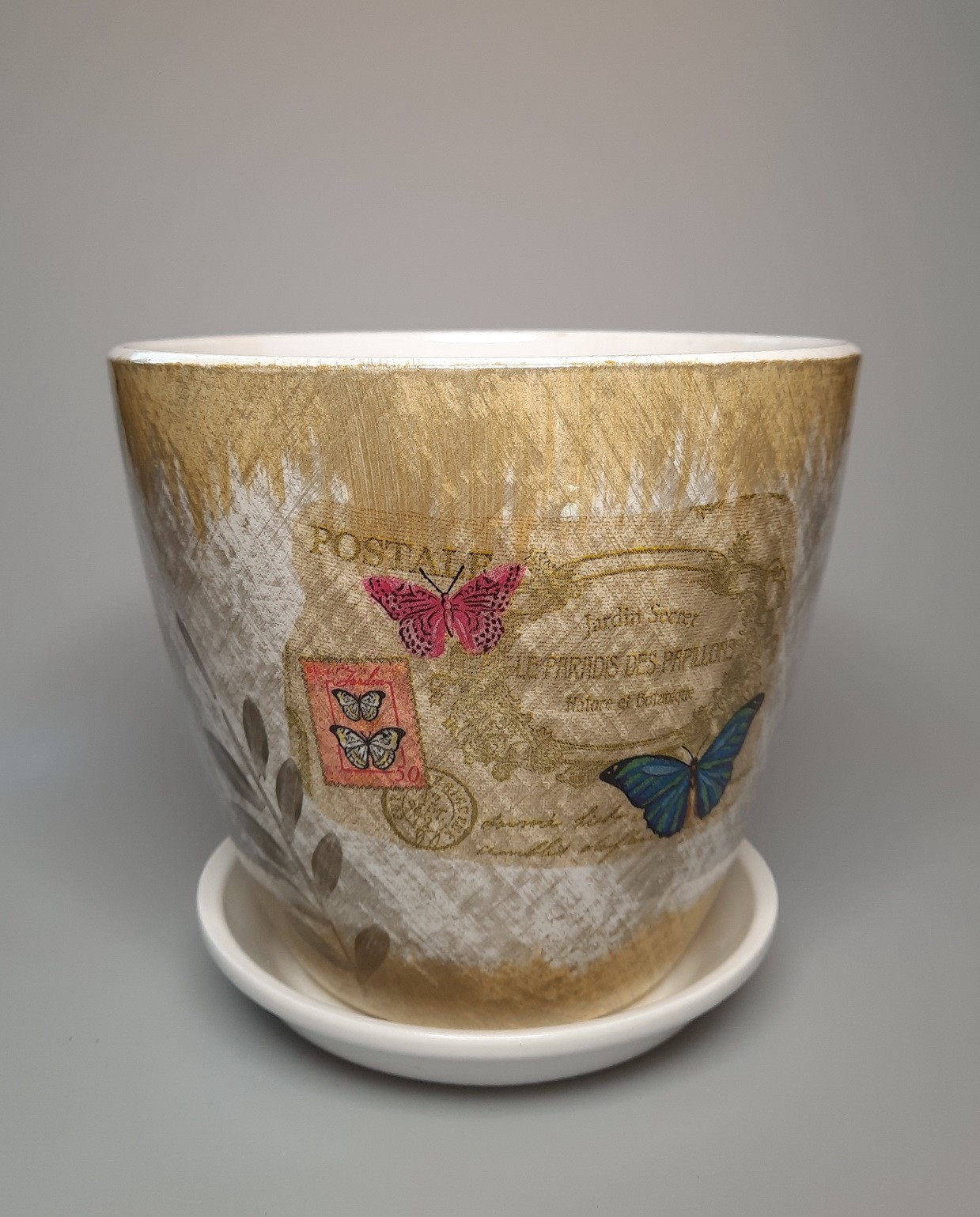 Горшок цветочный "Декупаж бутон бабочки" 450