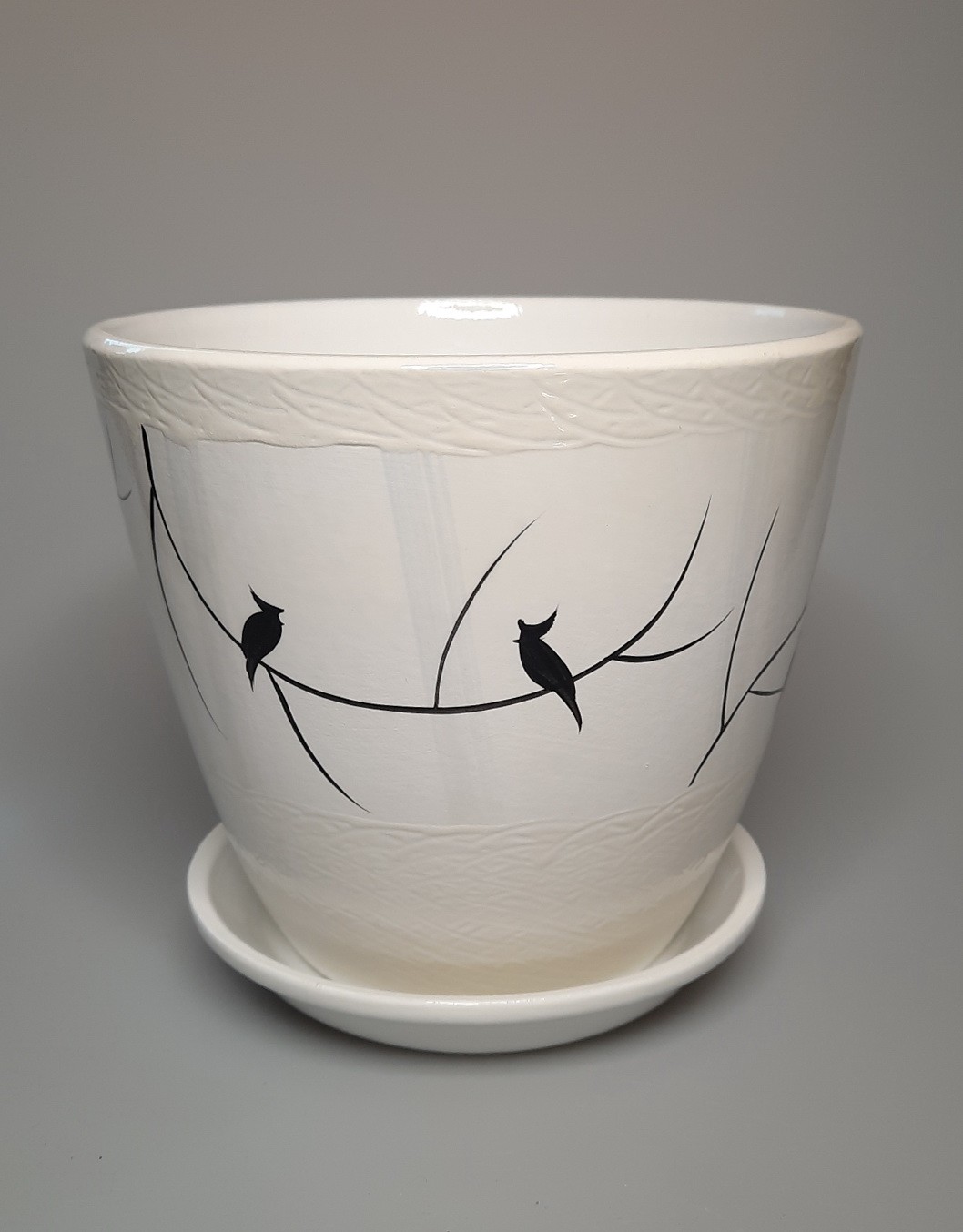 Горшок цветочный "Роспись бутон птицы белый" 450