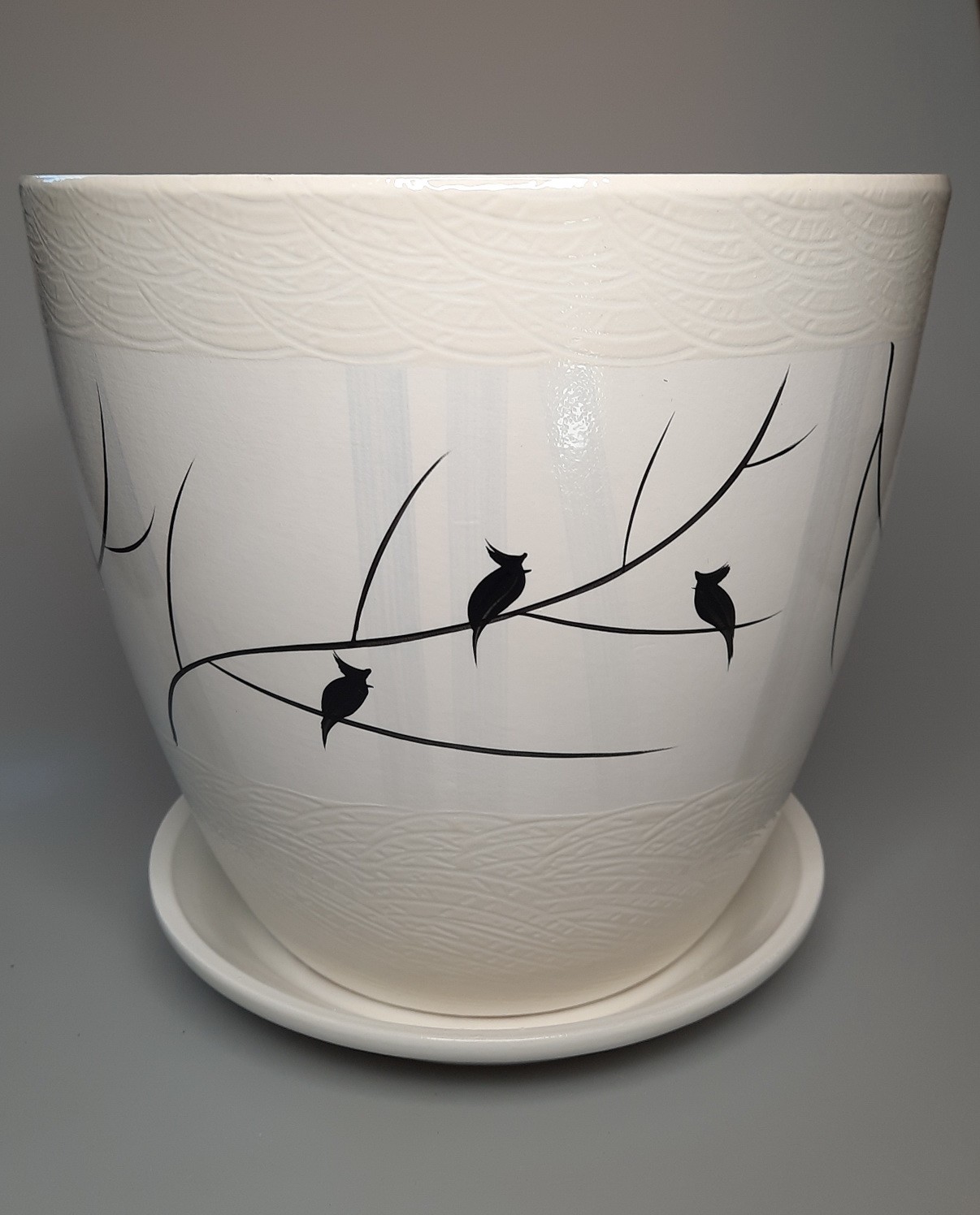 Горшок цветочный "Роспись бутон птицы белый" 650