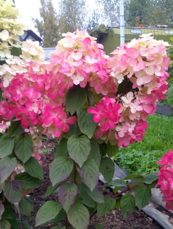«Диамант Руж» (Diamant Rouge) – куст высотой до 150см, диаметром до 200см, побеги прочные, прямые. Соцветия плотные, длинные, до 40см, конусовидные. Цветки крупные, при раскрывании белые, но через 2 недели становятся насыщенно красными, настоящий красный бриллиант! Осенью и листва приобретает оранжевый и пурпурный цвет.