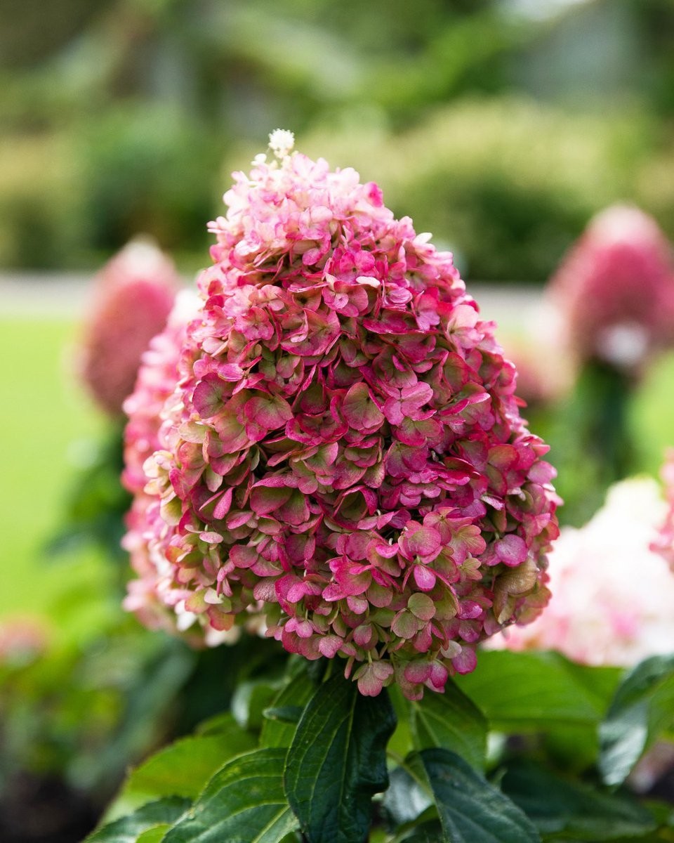 Высота этой гортензии не превышает 0,6 - 0,7 м и 0,7 -0,8 м в ширину. Обладает удивительно прочными побегами, а потому куст не разваливается и держит форму даже в период обильного цветения. Соцветие пышное, 15-20 см, состоит из стерильных цветков. В начале цветения цветки ослепительно белого цвета, затем окрашиваются в нежно-розовые тона, и к концу становятся насыщенно розового цвета с лаймовым центром и желто-зелеными цветками внутри метелки. Цветет с июля по сентябрь.
