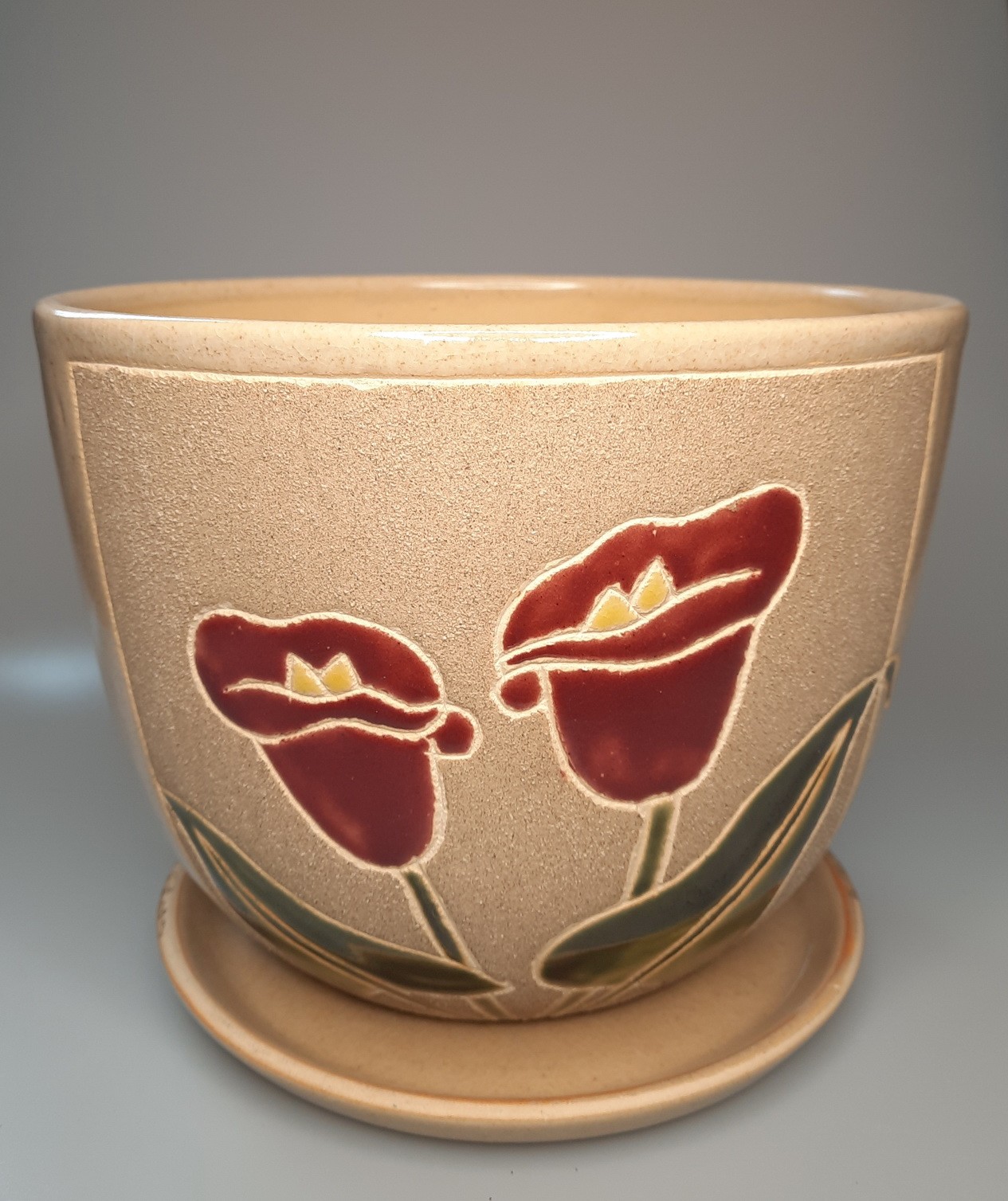 Цветочный горшок "Цветы" 22 см. Бежевый