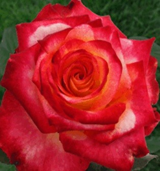 Биколор! Цветки ярко-красные, состоят из 20-35 лепестков с лютиково-желтым реверсом и красивой укладкой лепестков. Бутон - классической бокаловидной формы. На побегах, в основном, формируются одиночные бутоны, которые не показывают серединку при полном распускании. Края лепестков не боятся дождя. Цветение сопровождается ягодным ароматом.Высота куста: 70-80 см