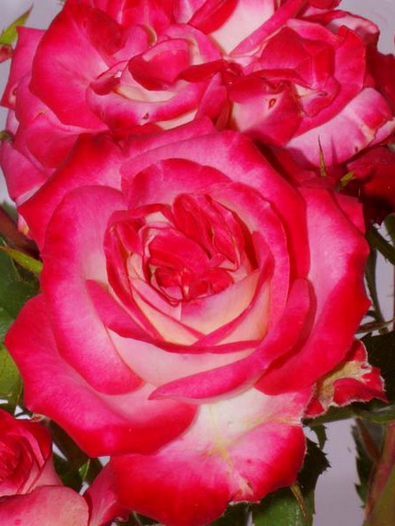 Роза Крейзи Вумен (спрей) - высота 50 см. Цветки двухцветные, белая с ярко-розовыми губами, в соцветии до 15 бутонов.