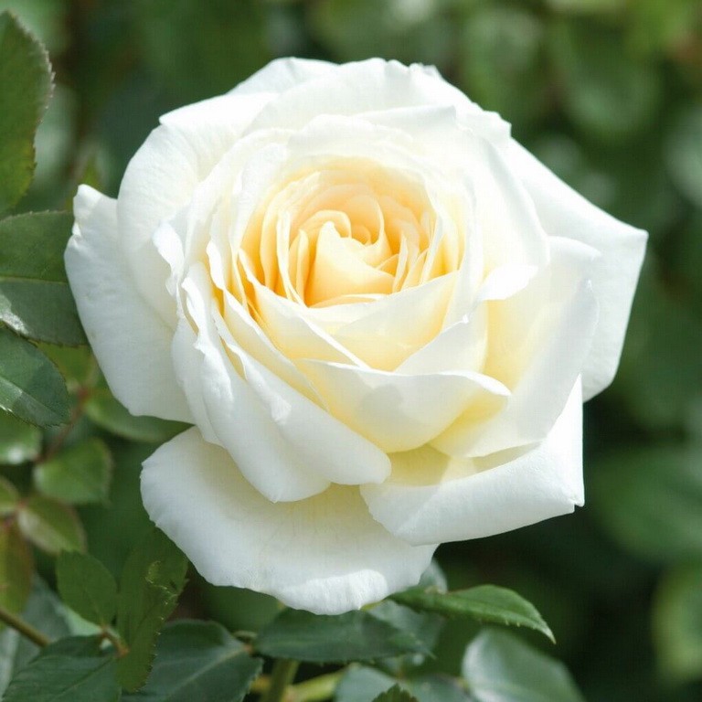 Роза Крем де Ля Крем (чайно-гибридная) - высота 90 см. Цветки бело-кремовые (нежная), густомахровая, цветение обильное.