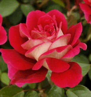 Лепестки бархатистые, нежные, при распускании бутона края подворачиваются, образуя сердцеобразную форму. Внутренняя часть лепестков интенсивно-красная с малиновым оттенком, внешняя - светлая, с желтым оттенком. За сезон радует обильным цветением несколько раз. Аромат средней интенсивности, сладковатый, типичный розовый.