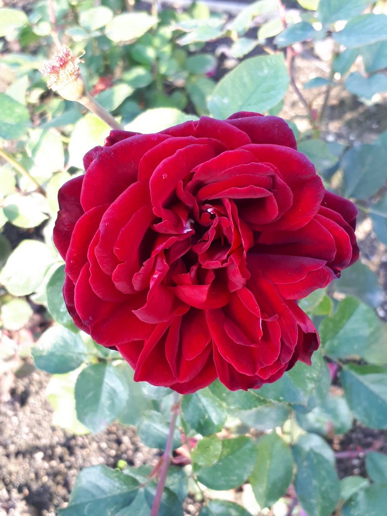 Роза Норита (чайно-гибридная) Norita - куст прямостоячий с крепкими прямыми побегами, высотой 100см, листья тёмно-зелёные, глянцевые. Цветок крупный, диаметром 12см, классической формы, густомахровый, тёмно-красный с чёрной бархатистостью. Аромат яркий, густой. Сорт неприхотливый, зимостойкий, не болеет, обильно и продолжительно цветёт весь сезон. Хорошо стоит в срезке.