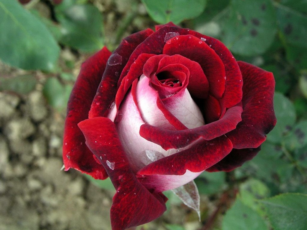 Роза Осирия (чайно-гибридная) - высота куста 90 см. Цветки красные, с изнанки кремово-молочная с серебринкой, густомахровая, приятный аромат.