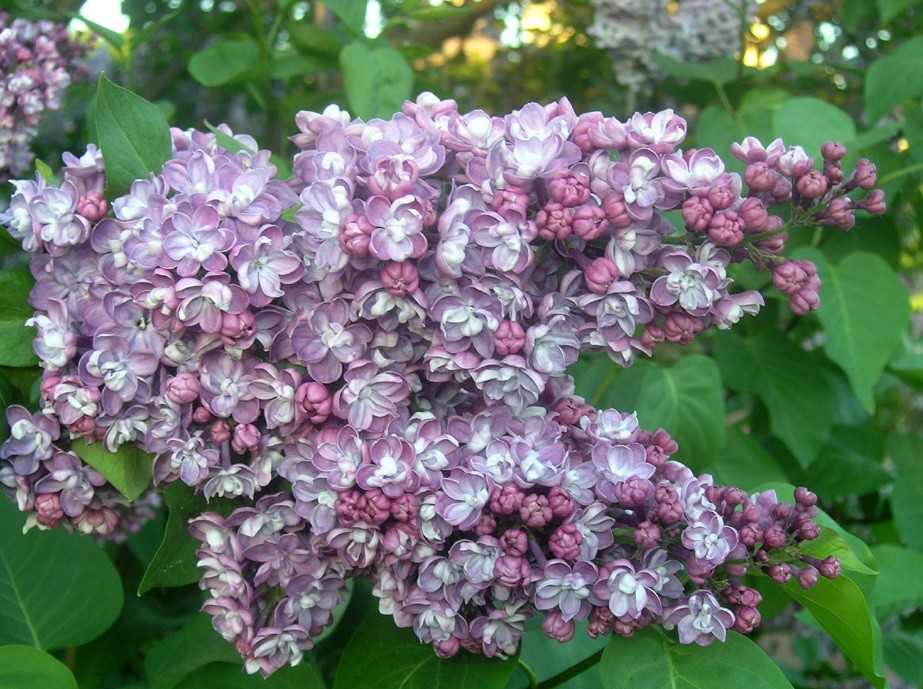 Кусты средней высоты 2-3 м, а крона раскидывается на 3 метра.Бутоны яркие, при распускании напоминают полиантовую розу. Цветки лилово-пурпурные, с более светлыми лепестками внутри, крупные, диаметром 2,6 см, махровые - 2-3 венчика. Лепестки округлые, асимметрично чередуются, у нижнего венчика отогнутые, у внутреннего слегка приподнятые, 2-3 лепестка третьего круга загнуты внутрь зева, душистые. Соцветия ширококонические, средней плотности. Цветет обильно в мае - июне.