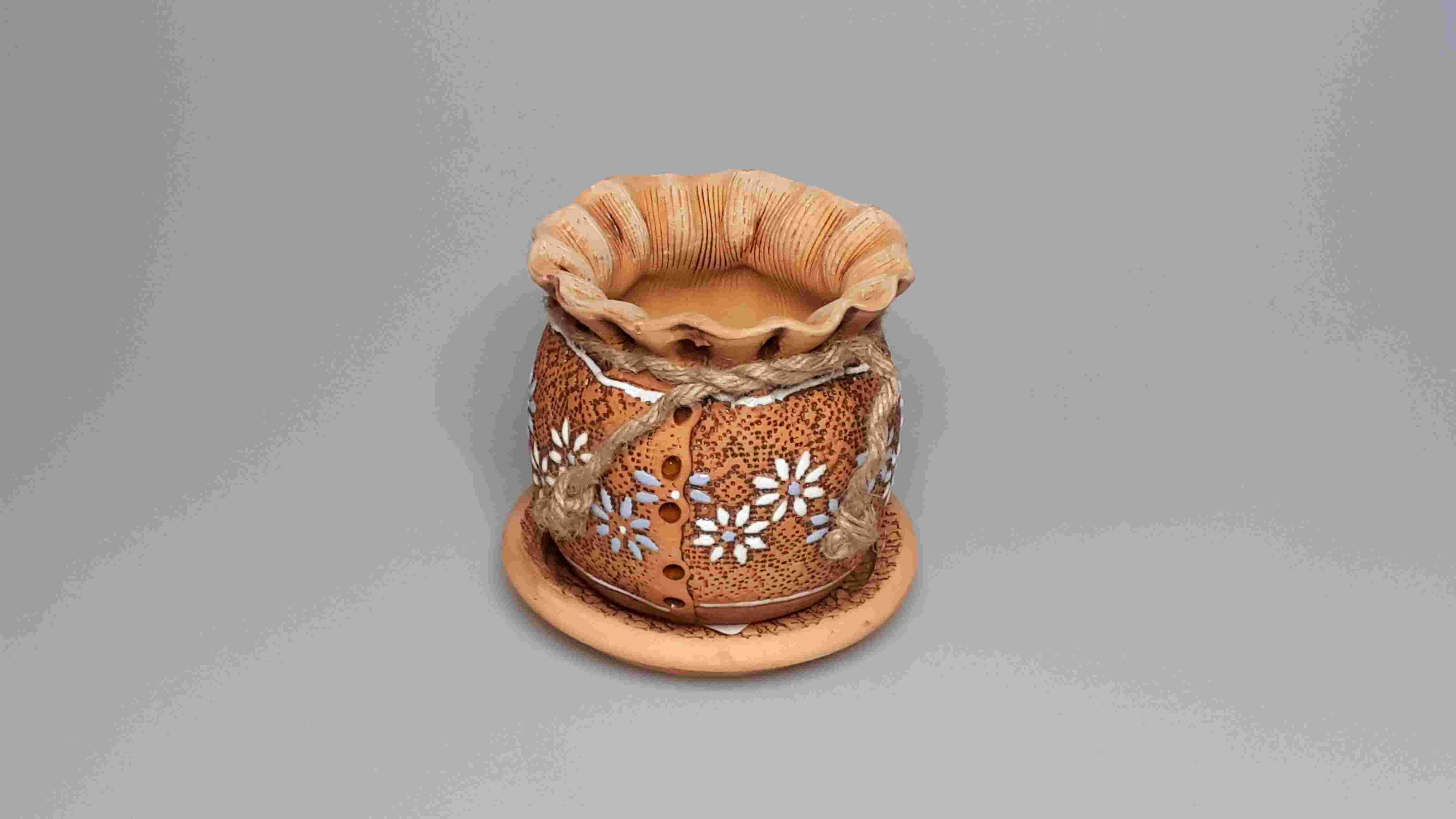 Цветочный горшок "Вышивка васильки №1" 10 см. с подд.