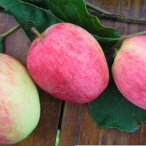 Летнего срока созревания. Дерево сильнорослое, с редкой широко-округлой кроной. Плоды массой 90-110г, округло-конические с легкой ребристостью. Кожица гладкая, сухая, с налетом, зеленовато-белая с красным полосатым румянцем по всей поверхности плода. Мякоть белая, рыхлая, мелкозернистая, сочная, кисло-сладкая. Сорт зимостойкий, к парше устойчивый. Ежегодное плодоношение на четвертый-пятый год после посадки.