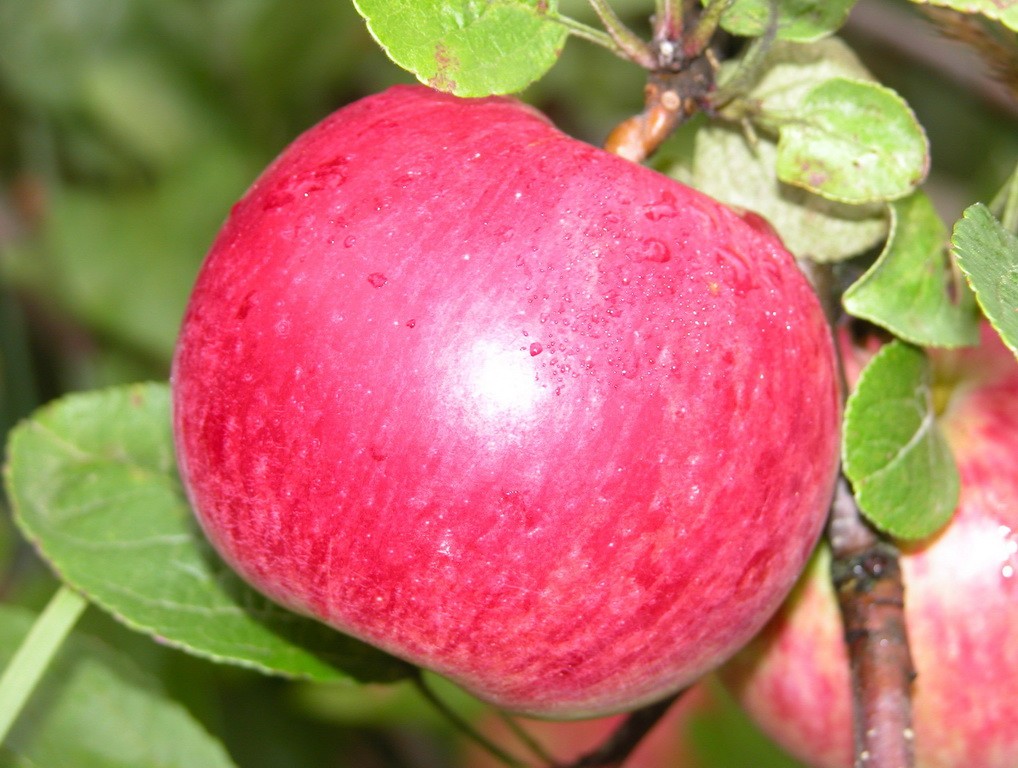 Осенний сорт. Полукарлик. Дерево сложено прекрасно: крона редкая, раскидистая, пониклая, зимостойкость высокая, урожайность выше средней, плодоношение ежегодное, паршой не поражается. Все плоды одного размера (120-130г) плоскоокруглой правильной формы, созревают в начале сентября, хранятся до ноября. Яблоки гладкие, кожица зеленовато-жёлтая с ярко-красным румянцем по всей поверхности плода «специально для праздничного стола», Мякоть кремовая, средней плотности, сочная, мелкозернистая, очень хорошего вкуса.